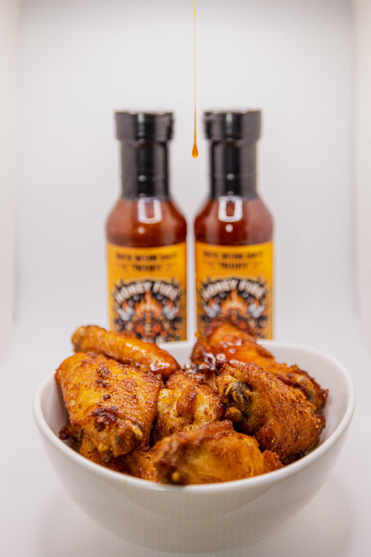 Elevate your pizza game with a drizzle of HoneyFire Gold Hot Honey. Infused with Ghost Chile Peppers and a touch of gold edible dust, this sweet and spicy blend adds an irresistible kick and a stunning shine to every slice. Try HoneyFire on your favorite pizza for a bold, unforgettable flavor experience.